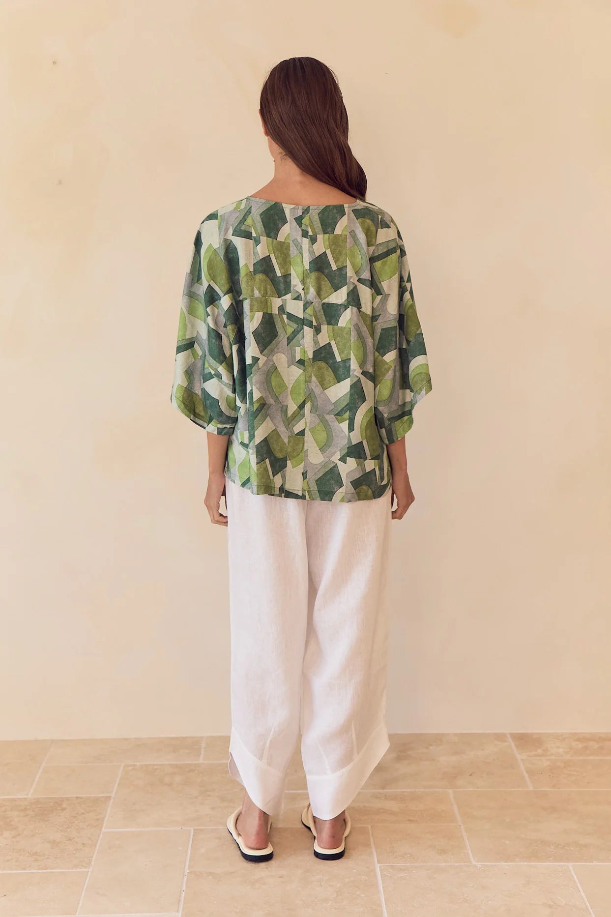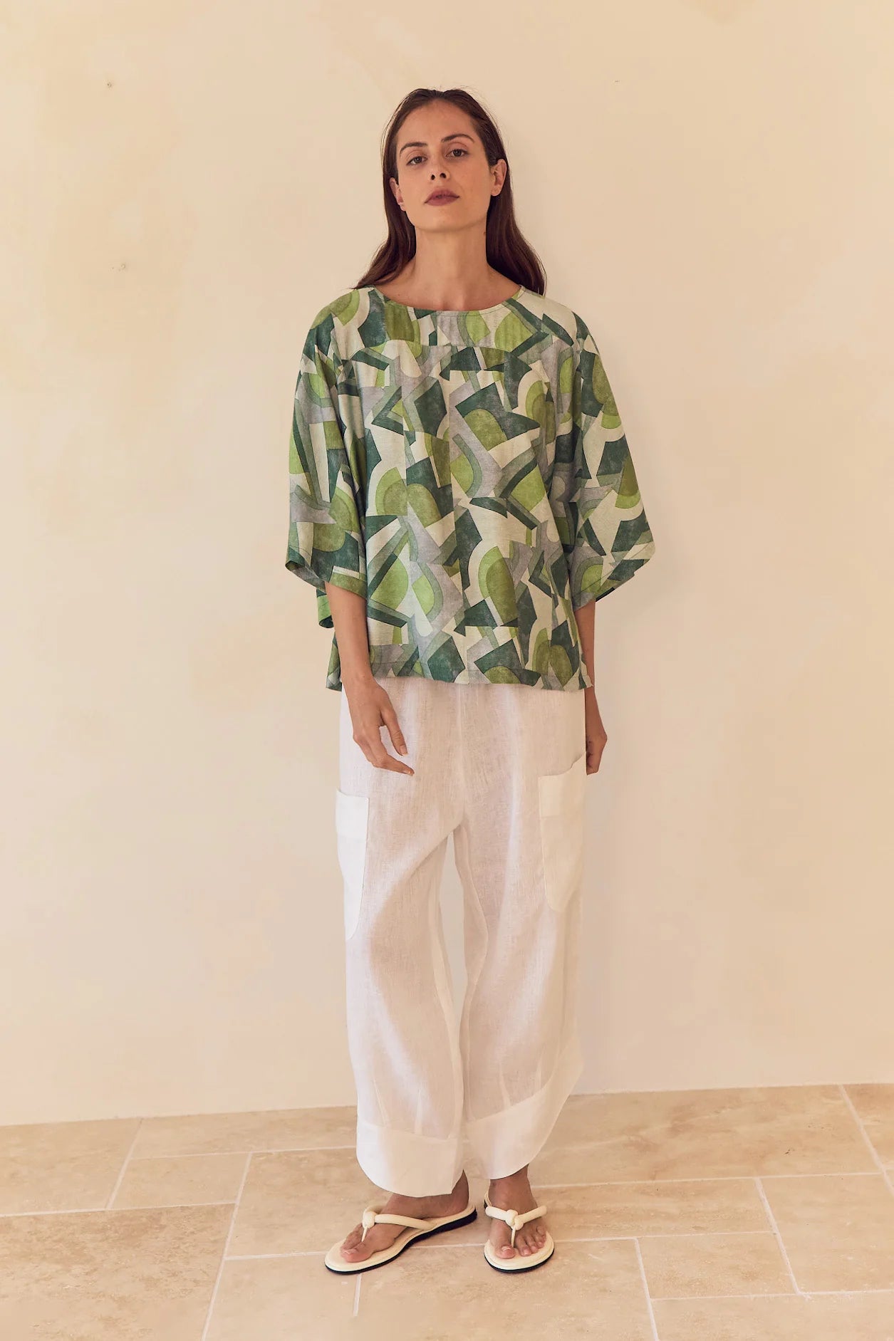 The Wide Sleeve Print Top is designed with effortless style in mind. Featuring wide 1/2 sleeves and a modern boxy silhouette, this top offers both comfort and chic appeal. The clean round neckline and subtle seam details add a refined touch, making it the perfect piece to pair with everything from tailored pants to casual denim.