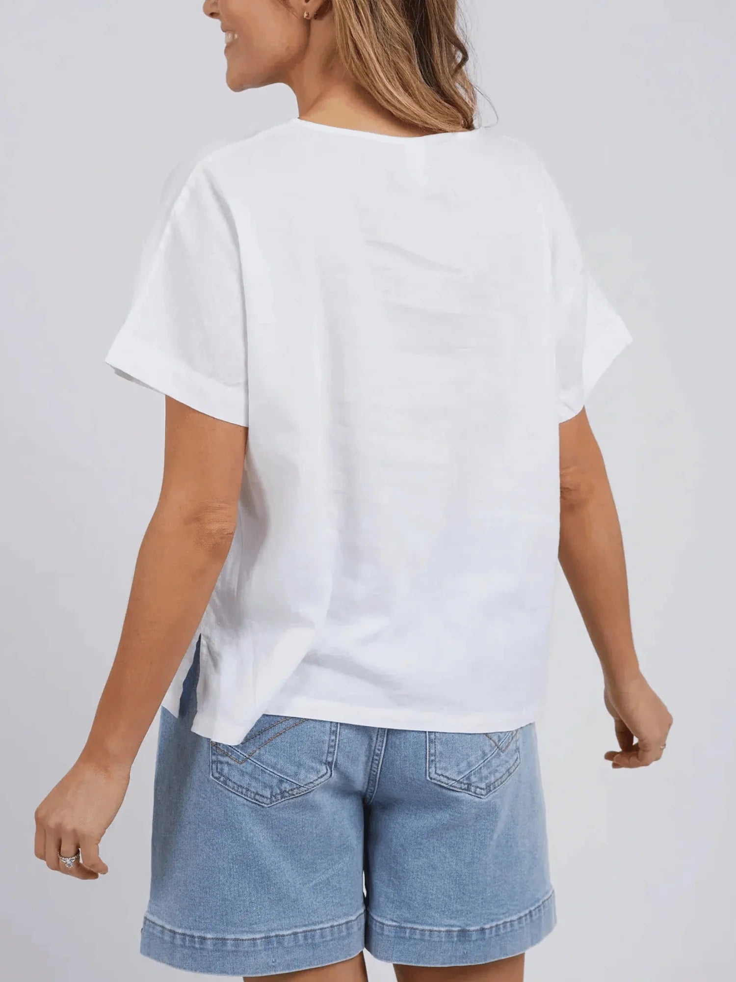 This curtis woven tee is a must-have basic for any wardrobe. it offers a comfortable and versatile fit. perfect for everyday wear, it is a timeless piece that can be dressed up or down for any occasion.