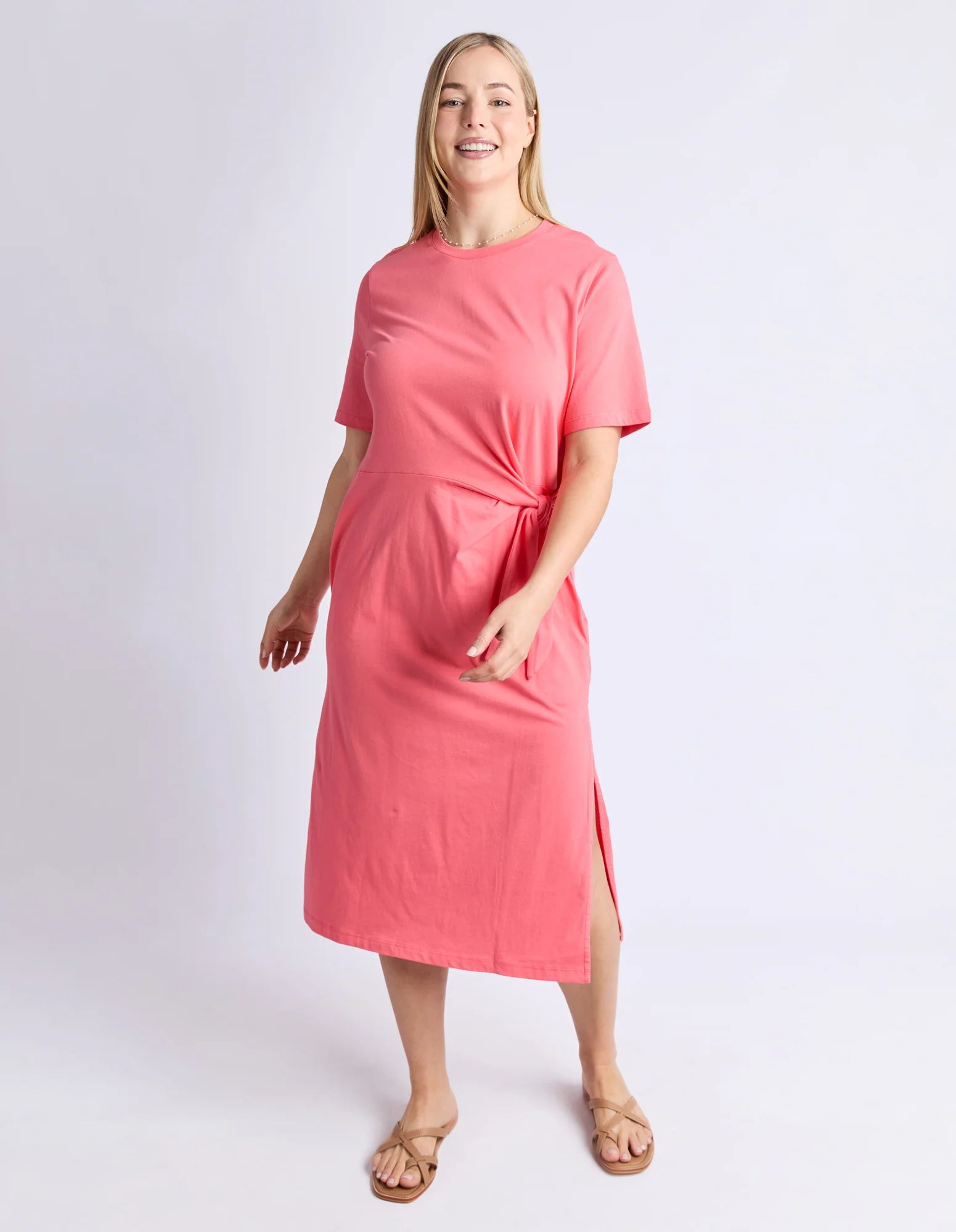 The Picnic Dress features a relaxed fit and flattering midi length, providing comfortable wear for any occasion. Its adjustable tie waist allows you to personalize your silhouette while maintaining effortless style. This dress is designed to support your confidence and ease throughout the day.