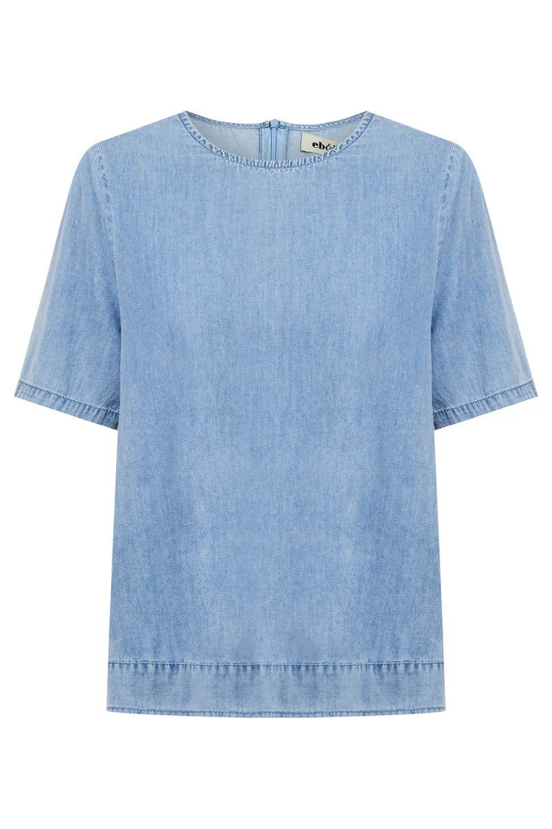 A beautifully soft and lightweight chambray top. Crafted from 100% cotton to have an effortless denim look. This is a t-shirt style silhouette with a wide hem detail and button closure at back of neck.