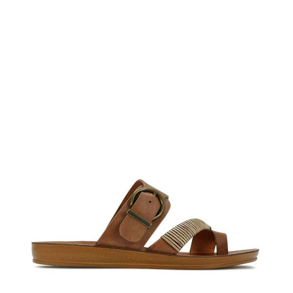 Los Cabos captures the spirit of fun in the sun with their Bria sandal. The ease of a slip-on is given a touch of natural beauty with our woven bamboo wrap gracing the toe strap, whilst the antique round buckle on the back strap adds a treasure box accent. To top off the ensemble the upper is given a special graffiato detailing to add an authentic surface relief.